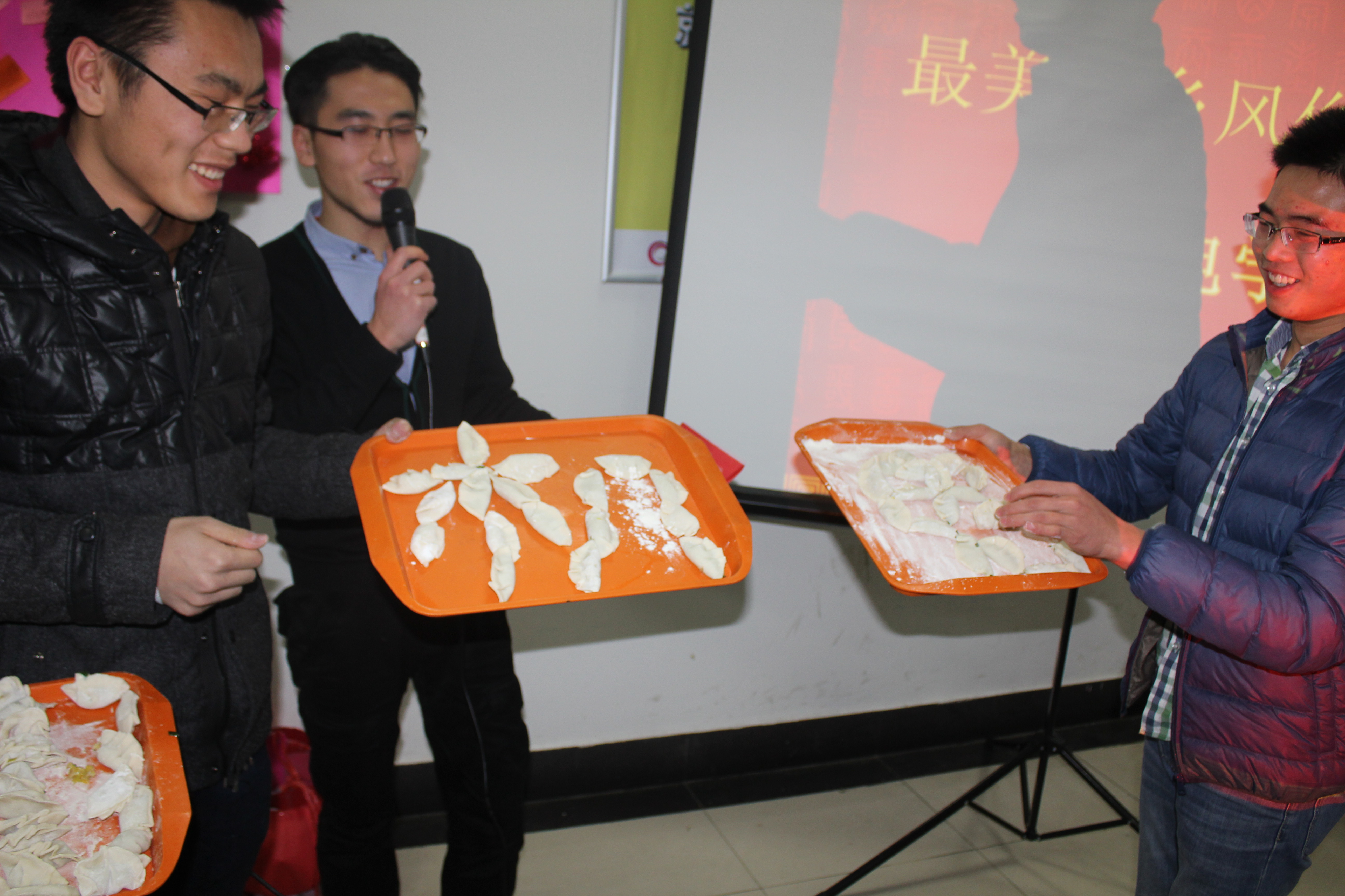 最美家乡展示环节之后,精彩纷呈、各显神通的师生包饺子活动随即开始。各位老师分别作为队员加入到九组包饺子小队中,与学生一起包饺子,话家常,现场气氛十分热烈。包完饺子后,各小队分别上台展示了师生共同努力的成果,有的小队将饺子摆出机电、福等式样,向在场师生献上了最美的元宵节祝福,有的小队则充分发挥对饺子的想象力,任性地包出了各种奇特的饺子。之后,师生们一起品尝了汤圆与自己的劳动成果,喜悦之情洋溢在每一张灿烂的笑脸上。