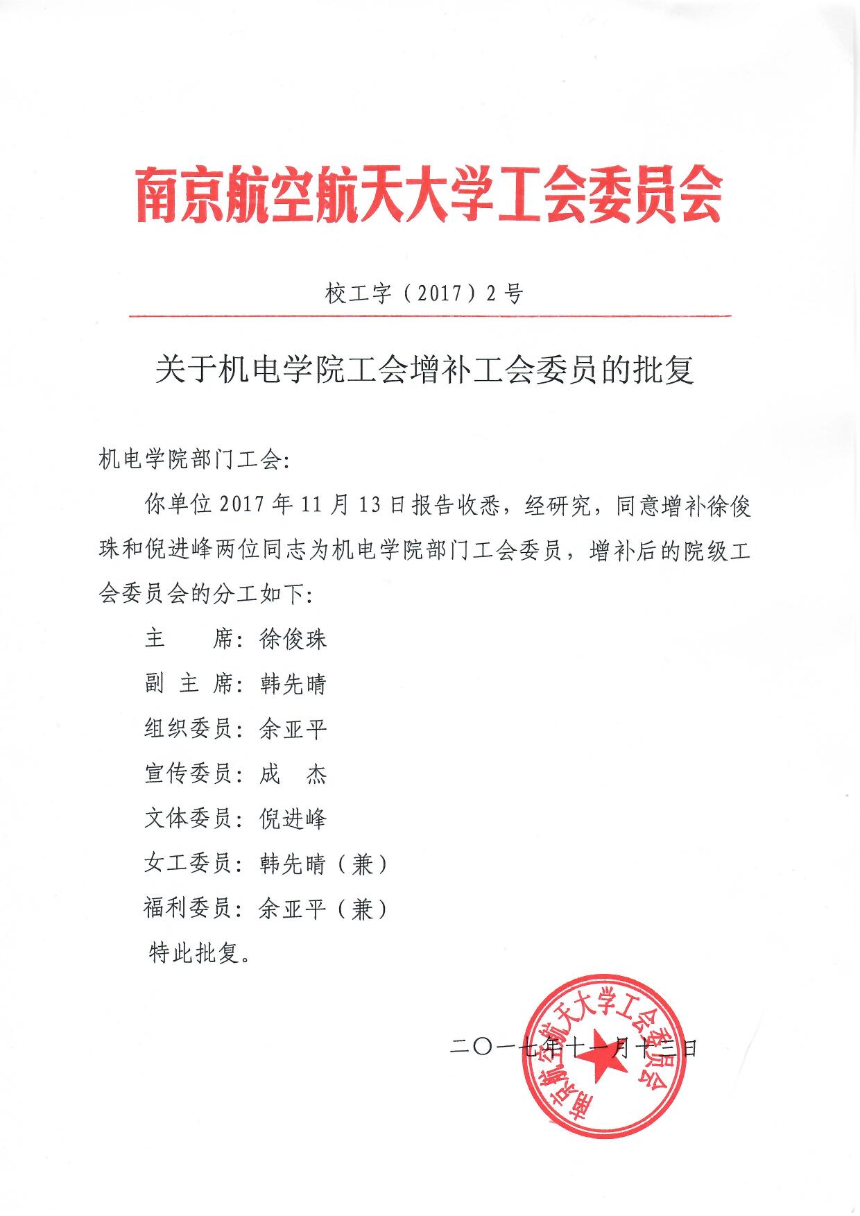 关于里番 工会增补工会委员的批复