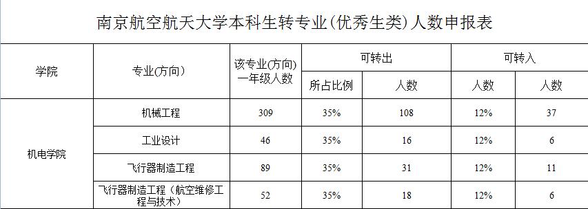 年南航里番 本科生转专业(优秀生类)人数申报表