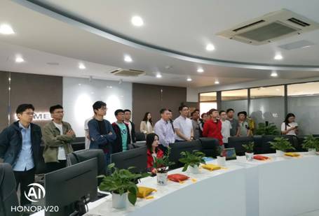 在苏美达能源控股有限公司总工程师、里番 589级杰出校友孙建华及质量安全中心经理汪蕾蕾的带领下,先后参观了公司的测试中心、集控中心、制造中心以及楼顶电站。在集控中心,大大的显示屏上各区域的电站运行情况尽收眼底,能够第一时间实现电站的运维和管理。目前集控中心已经实现了全自动化运行管理。