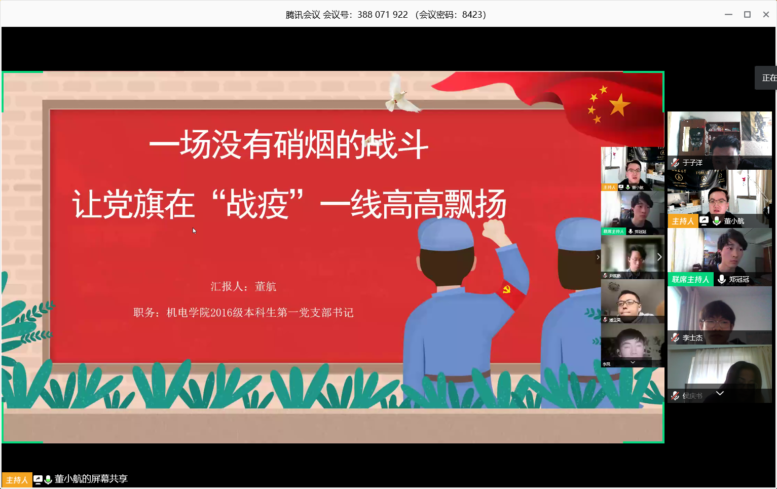 2016级本科生党支部扎实落实“三会一课”制度,利用好线上平台,于4月9日下午开展战“疫”云党课,不忘初心,牢记使命,让战“疫”的党旗在学生党员中高高飘扬。
