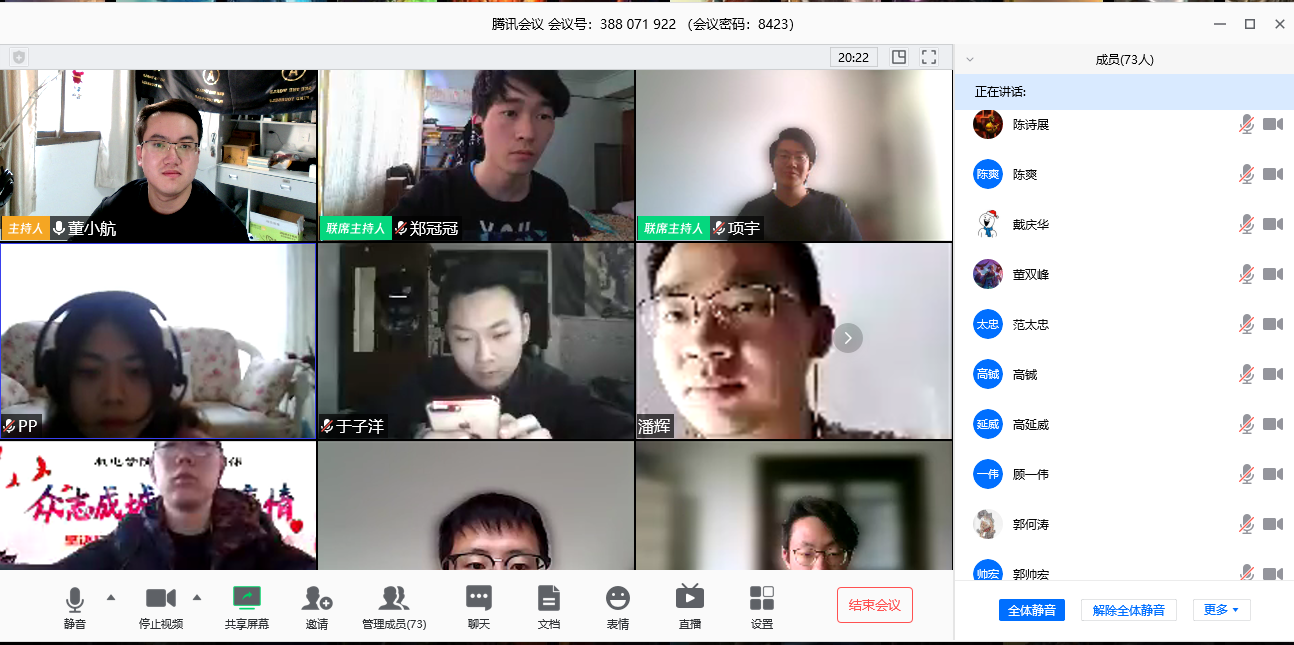 为了按时召开党支部大会,里番 2016级本科生第一、第二党支部联合召开线上党支部大会,特殊时期,特殊办法,我也算是切身体会到了这个观念,党支部76名学生党员加上1名辅导员党支部书记,使得本次会议如火如荼的展开。反观会议内容,第一、第二党支部副书记分别分享了自己在防疫期间的心得感想,党支部书记紧接着给我们上了一堂特殊时期的党课,我个人觉得党支部会议就是让每一位党员的警钟长鸣,提醒每一位党员在不同时期都要牢记自己党员的身份,疫情期间,“党员先行”“党员打头阵”等等话语并不是停留在口号上的,我们学生党员同样是伟大党组织中的一份子,更是党组织中的新鲜血液,做好本职,做好带头,做出榜样,做合格党员!