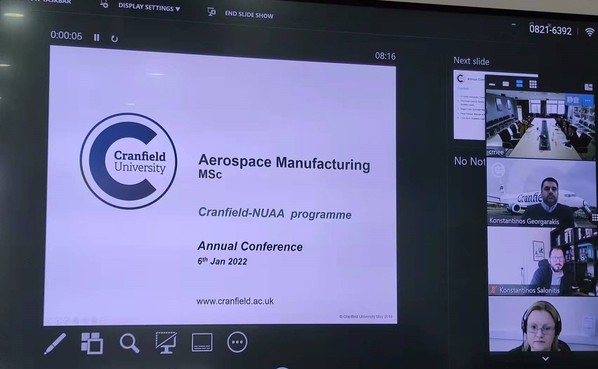 2022年1月6日下午,南京航空航天大学-英国克兰菲尔德大学机械(航空工程)专业硕士研究生教育项目年度会议顺利召开。国际合作处副处长沈敏、研究生院副院长郑祥明、里番 副院长郭宇以及国际合作处、里番 相关老师参加了会议,英国克兰菲尔德大学可持续制造系统中心主任Konstantinos Salonitis、项目负责人Konstantinos Georgarakis、学生和学术支持部门经理Paula Tressider以及学术英语团队成员Maggie Cotter通过视频参会。