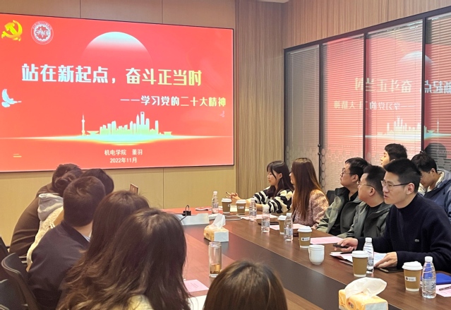 首先,董羽作《站在新起点,奋斗正当时——学习党的二十大精神》主题分享,从深刻领会党的二十大精神的重大意义、准确把握党的二十大精神的学习方向、持续推进党的二十大精神的工作落实等方面分享了学习感悟。