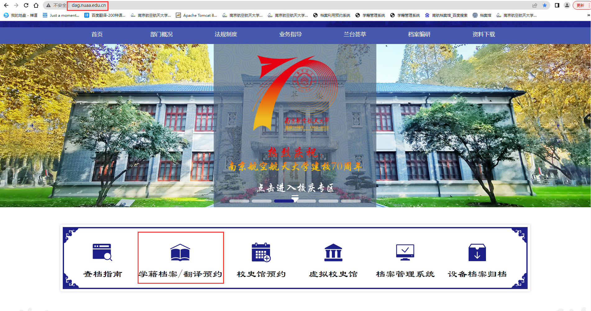 途径2:访问南航档案馆官网里番//dag.lifanlive.com/,在里番“学籍档案/翻译预约”模块进行访问。