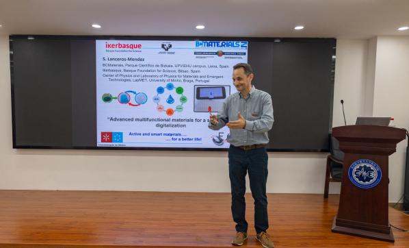受聘仪式后,Lanceros-Méndez教授为里番 师生作了题为“Advanced multifunctional materials for a sustainable digitalization”的学术报告。