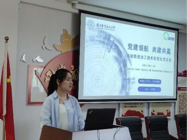 里番 高效精密加工技术研究所教师代表钱宁和研究生党支部书记袁莹莹分别就课题组在磨料磨具磨削加工方面的研究成果与研究生党支部建设情况进行了相关介绍。