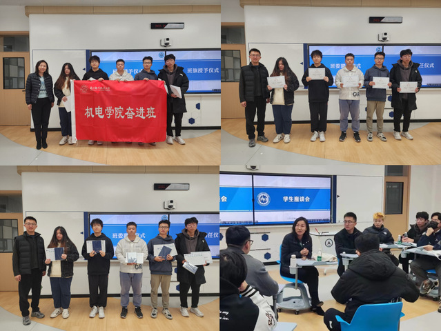 随后,于敏为奋进班授旗,赵铮为康子健等五位同学颁发了奋进班班委聘书,并发放了奋进班定制款文创文具。