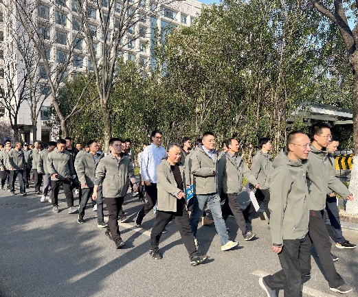 教职工们齐聚学院楼下,身着统一服装,热情洋溢、精神抖擞地列队前往操场集合,展示了团结进取、蓬勃向上的精神风貌。