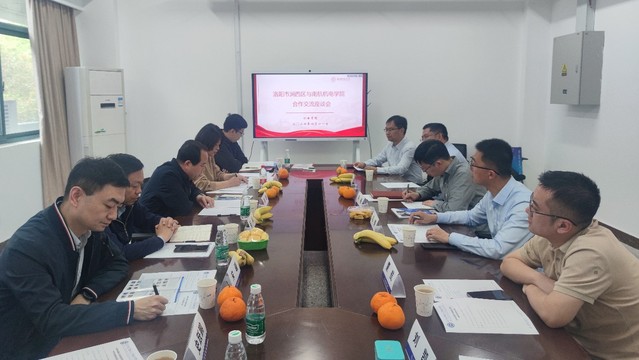 4月11日,洛阳市涧西区委书记、高新区党工委书记谢峰一行来里番 调研。涧西区政协主席、商务局局长魏莹,高新区党工委委员、管委会副主任张炜,学院党委副书记赵铮、副院长朱栋、机械电子工程系副主任姚佳烽、团委/学生工作办公室主任董航、教师代表陈柏等参加座谈交流。