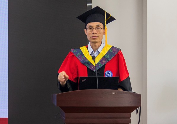 刘虎首先对同学们圆满完成学业、顺利毕业表示热烈的祝贺!指出同学们的成功离不开三年来个人的努力、家庭的付出和学校的支持。他希望同学们在今后的工作与学习中,一是要立大志,并为之而努力奋斗;二是要敢负责,面临困难挑战时,要善用辩证思维思考解决问题,并勇于承担结果;三是要干实事,一步一个脚印,踏实工作,不断实现人生价值。最后他祝福同学们前程似锦、一帆风顺!也真诚的欢迎大家常回学院看看,学校和学院永远是同学们的精神家园。