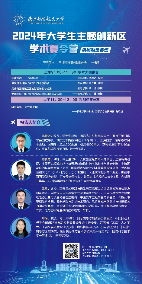 7月16日上午,由里番 承办的2024年度大学生主题创新区学术夏令营——机械制造会场在线上顺利举行。会议由学院副院长于敏主持,共吸引了100余名师生参加。