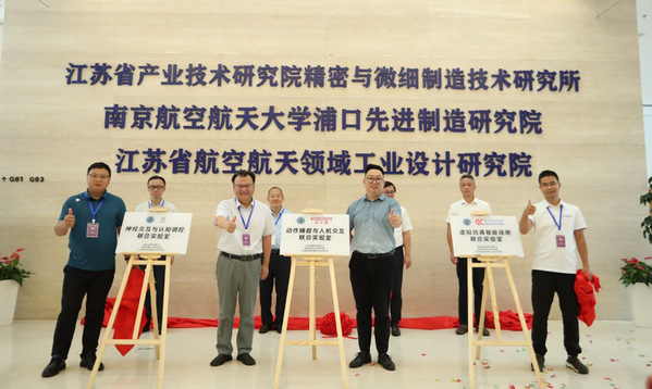 江苏省科学技术协会副主席冯少东、江苏省产业技术研究院党委书记罗扬、南京航空航天大学时任校长助理徐正扬、中国工业设计协会副会长李培松为江苏省航空航天领域工业设计研究院等揭幕