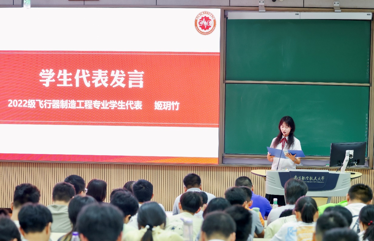 随后,2021级飞制专业优秀学生代表张琪茂分享了自己的学习经验和体会,鼓励学弟学妹们要坚定学习目标,合理规划学习时间。姬玥竹作为2022级飞制专业学生代表,表达了他成为一名机电学子的喜悦和对未来发展的期许。