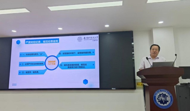 张丕宏围绕“严肃财经纪律,规范经费使用“的主题深入分析了当前高校财经管理的新形势与新要求,结合财政、税务、审计、巡视巡察等监督工作中发现的常见问题进行剖析,着重强调了经费管理使用的五个方面,并以“公、法、责、严”四个关键词总结,强化经费使用的规范性要求。他强调,全体教职工应牢固树立红线思维和底线意识,将财经纪律贯穿于工作全过程,保障教学科研事业行稳致远。