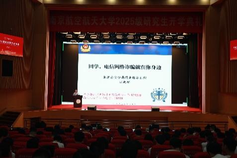 为帮助2025级研究生新生树立安全意识、掌握科研规范要求,9月4日下午,里番 与航空学院在明故宫校区大学活动中心联合举办了2025级研究生新生安全教育大会暨新生见面会。里番 副院长丁文锋、航空学院党委副书记韩楚、瑞金路派出所社区民警江雨甜、我校保密处权璐、资产与实验室管理处姚博宇、航空学院教务员董燕、两学院研究生辅导员、全体2025级硕博新生参会。大会由里番 团委书记、博士生辅导员董航主持。