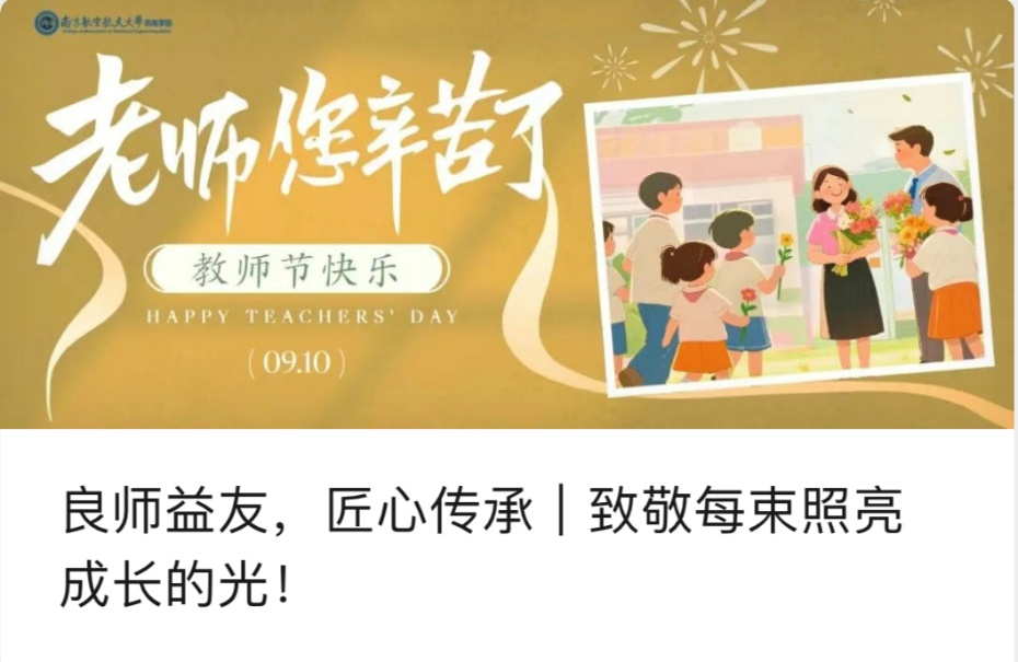 为深入学习贯彻习近平总书记关于教育的重要论述,大力弘扬教育家精神,激励和引导广大教师争当“四有”好老师,践行“四个相统一”,争做“四个引路人”,营造全社会尊师重教的良好氛围,在第41个教师节到来之际,学院微信公众号特推出《良师益友,匠心传承|致敬每束照亮成长的光!》,精选展现了荣获学校“良师益友”称号的28位教师在指导学生过程中留下的珍贵瞬间。他们以学识启迪智慧,以品格塑造灵魂;既是学术领航者,也是人生引路人。一幅幅照片定格了老师们传道授业的专注身影与关怀备至的温暖场景,汇聚了学子们笔下的真挚感言与深情祝福,生动体现了学院尊师重教、薪火相传的优良传统。