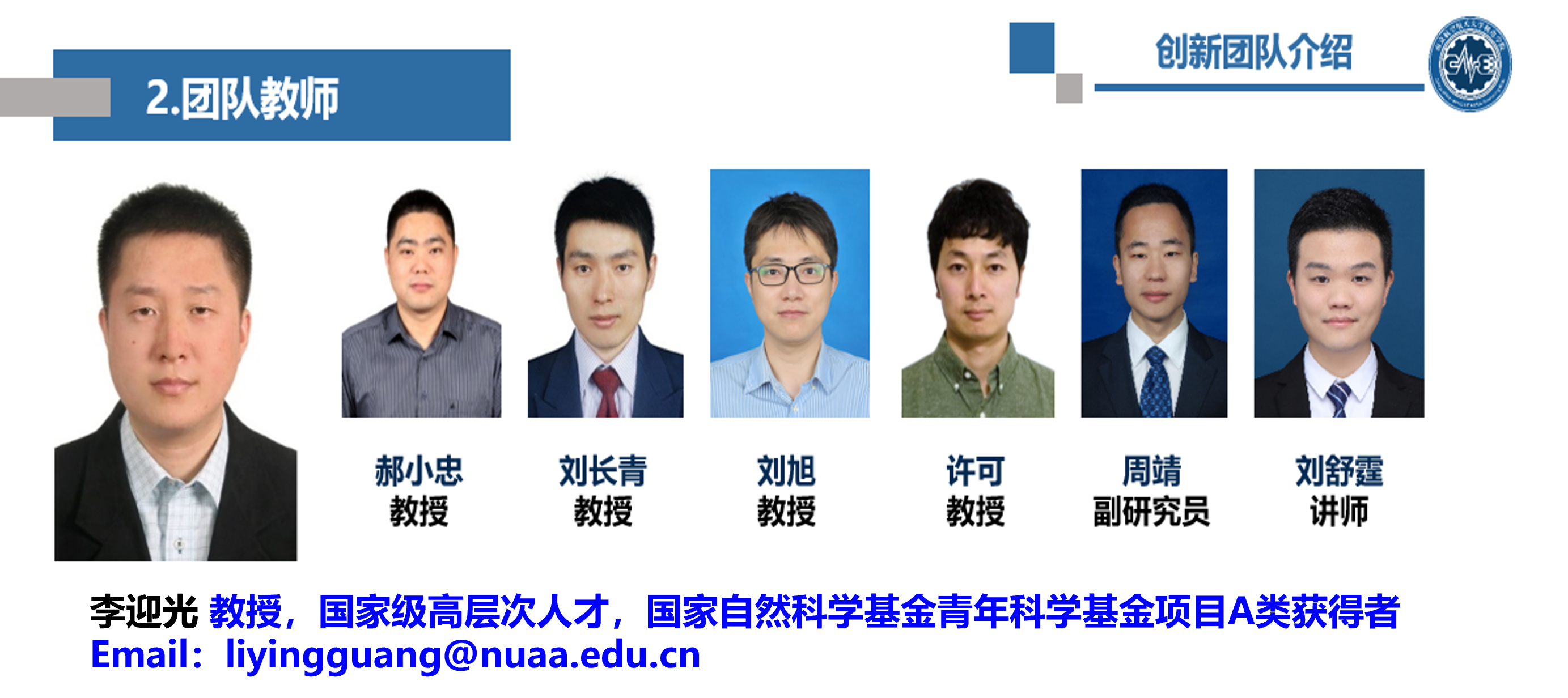团队负责人李迎光教授简介:江苏省精密与微细制造技术重点实验室主任,受邀担任制造工程师协会会刊《Journal of Manufacturing Systems》(SCI收录)副主编、英国机械工程师协会会刊《Journal of Engineering Manufacture》(SCI收录)副主编、《南京航空航天大学学报》(中英文)编委会副主任。担任国际生产工程科学院(CIRP)Associate Member、中国图学学会智能工厂专委会主任委员、江苏省航空航天新材料标准化技术委员会主任。第一完成人获国家技术发明二等奖和国家级教学成果二等奖各1项,获科学探索奖。