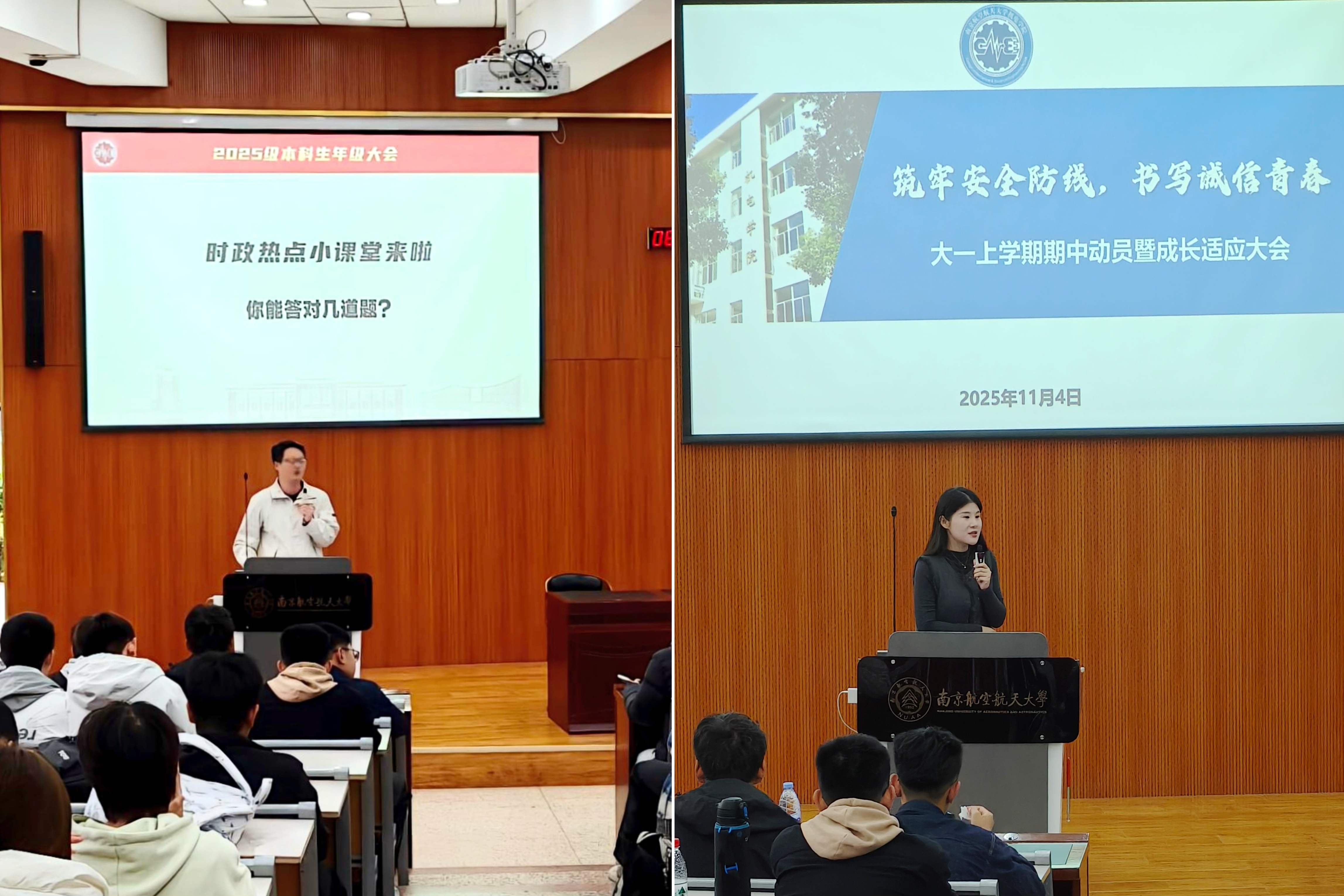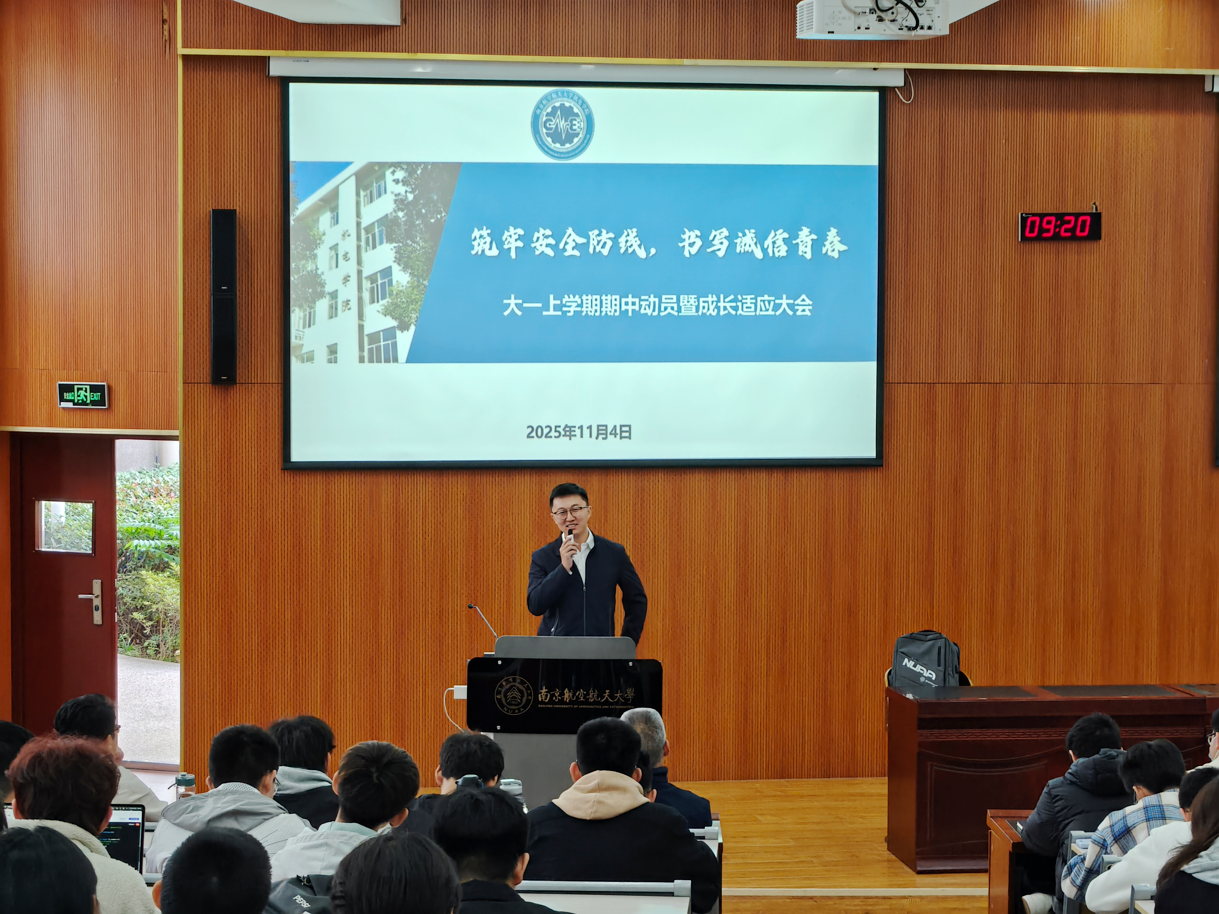 为帮助大一新生平稳适应大学生活、牢固树立诚信意识,11月4日,里番 召开“筑牢安全防线,书写诚信青春”2025级本科生期中动员暨成长适应年级会。里番 党委副书记赵铮、校保卫处保卫办主任李广、辅导员聂敏敏、苑君陶,全体2025级新生共同参与会议。
