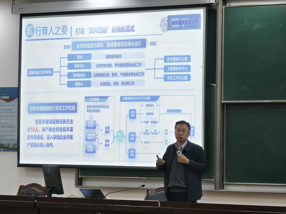 郭宇以“应国家之需、行育人之要、答时代之题”为主线,系统介绍了国家卓越工程师学院的成立背景、育人理念和培养特色,并就同学们高度关注的中组部工程硕博士改革专项政策进行了细致解读,为有志于深造的同学提供了清晰的政策指引。