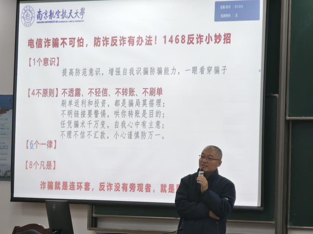 为帮助大三学生明确未来发展方向、增强安全意识,2025年11月12日晚,里番 2023级本科生专业深度领航暨反诈教育年级会在将军路校区D1213教室举行,校国家卓越工程师学院副院长、里番 教授郭宇,保卫处消防科科长李广,辅导员刘梦嘉、于婧怡,以及年级全体学生共同参与。