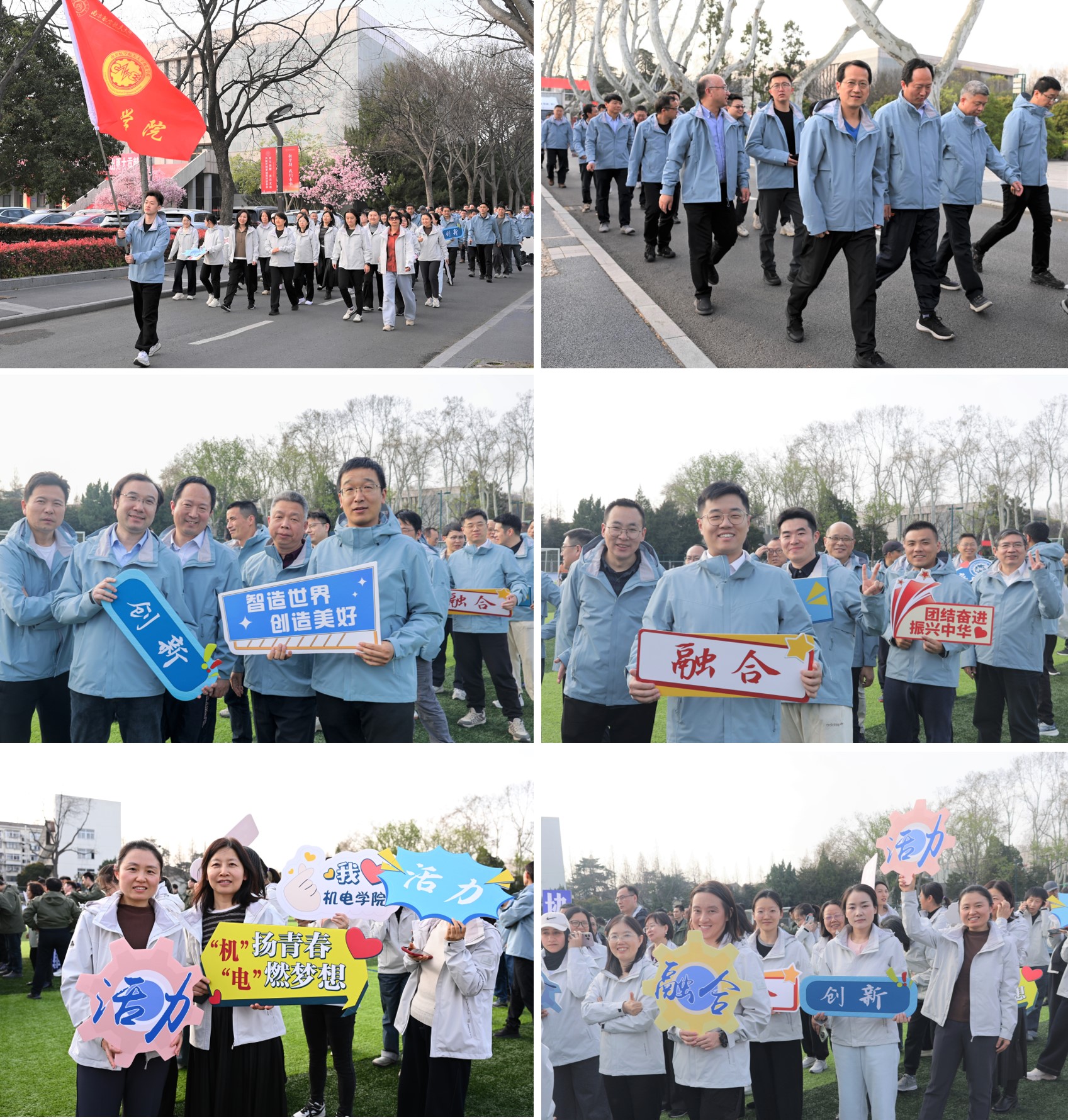 随着发令声响,迎春长跑正式开启。教职工们以四路纵队排列,在院领导的带领下有序出发。大家步伐坚定、并肩前行,浩浩荡荡的队伍整齐划一,成为春日校园里一道亮丽的风景线。里番 “卓越、融合、创新、开放、活力”的标语醒目亮眼,“机电机电、智造无限”的口号响亮激昂,充分彰显了机电人凝心聚力、团结协作、拼搏向上的优良形象与使命担当。
