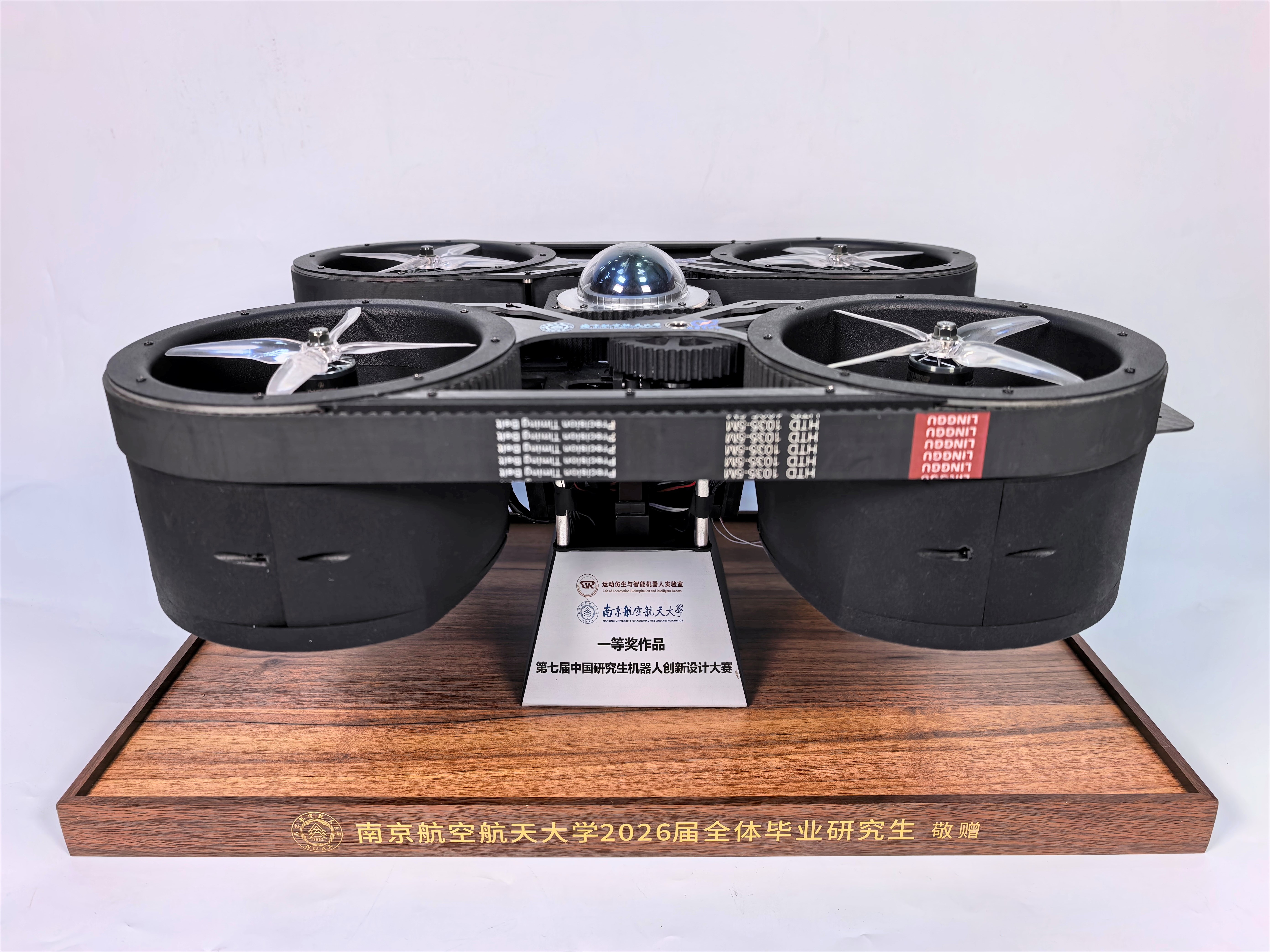 南京航空航天大学2026届研究生毕业典礼上,一份承载着青春赤诚与科研热忱的特殊礼物,温暖了整个毕业季。里番 运动仿生与智能机器人实验室的徐友直同学,代表全体毕业生,将一台由团队自主研发的“凌聚Ⅱ”无人飞行器,郑重递到姜斌校长手中,该作品在第七届中国研究生机器人创新设计大赛中荣获全国一等奖。介绍间,这台原本折叠的飞行器缓缓舒展机翼,在台上平稳展开、轻盈亮相,用一场干脆利落的现场演示向母校诉说着三年深耕的初心,也交出了一份属于南航学子的硬核答卷,更藏着一群年轻人对理想的坚守与对母校的赤诚。